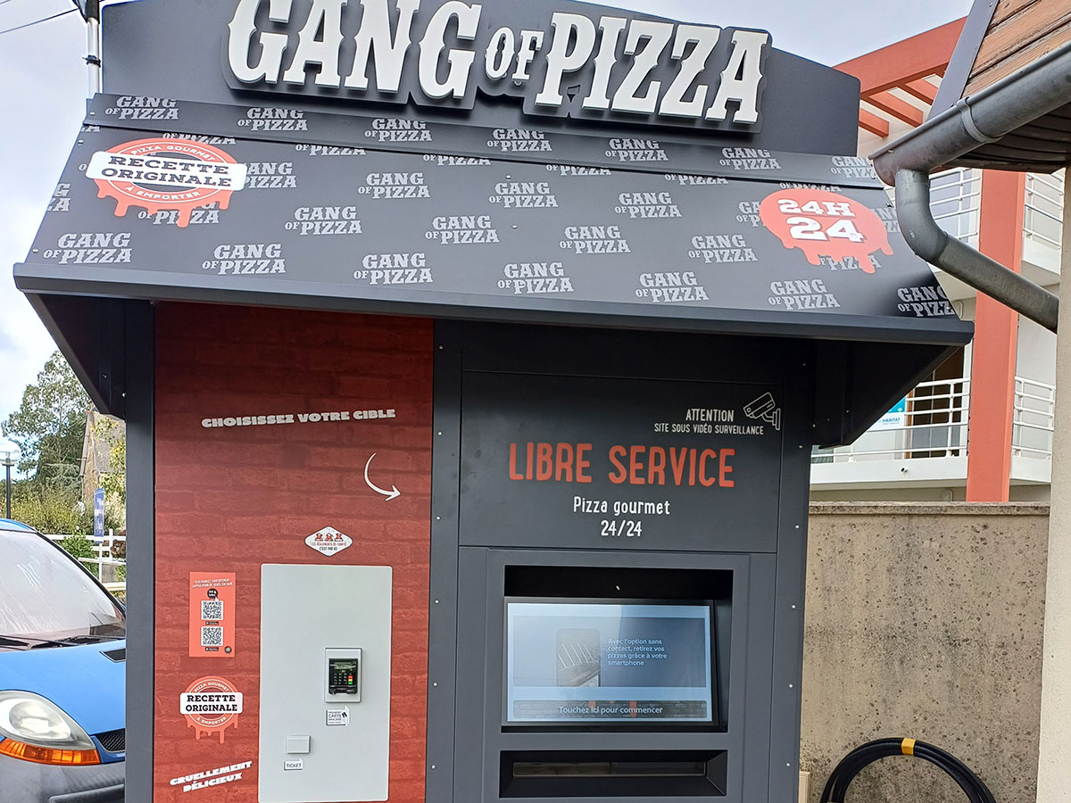 Les pizzas gourmets sont proposĂ©es Ă la vente dans les distributeurs automatiques du Gang Of Pizza. Les pizzas sont conservĂ©es Ă 3°C dans le distributeur pour ĂȘtre disponibles 24/24.